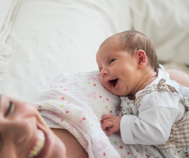 La primera sonrisa social intencional de tu bebé ocurre naturalmente alrededor de las 6 semanas de edad. Regresando una sonrisa le ayuda a tu bebé a sentir la interacción de un lado a otro. Sonriendo le brinda una manera importante de conectarse contigo, aparte de llorar por tu atención.
