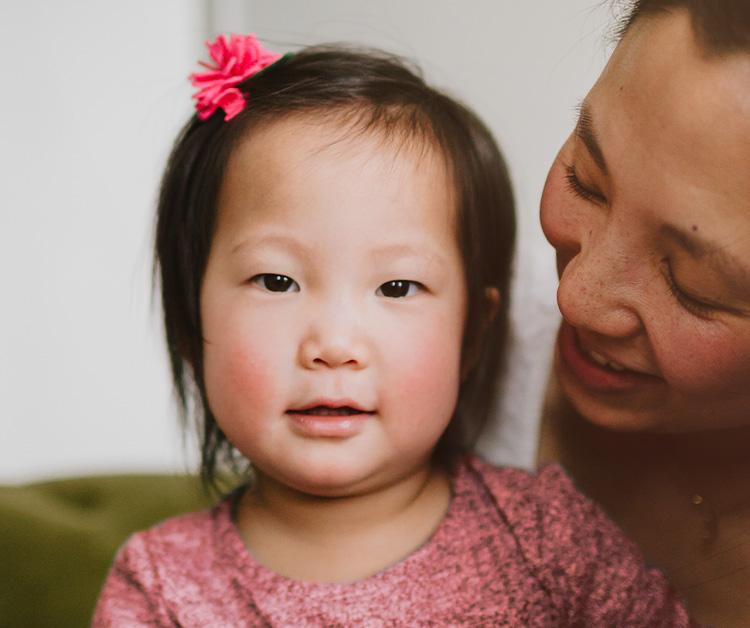 Your child loves copying you. Seat your child facing you on the floor. Clap your hands 3 times, then repeat. Now sing to the tune of "The Wheels on the Bus," saying your child's name.